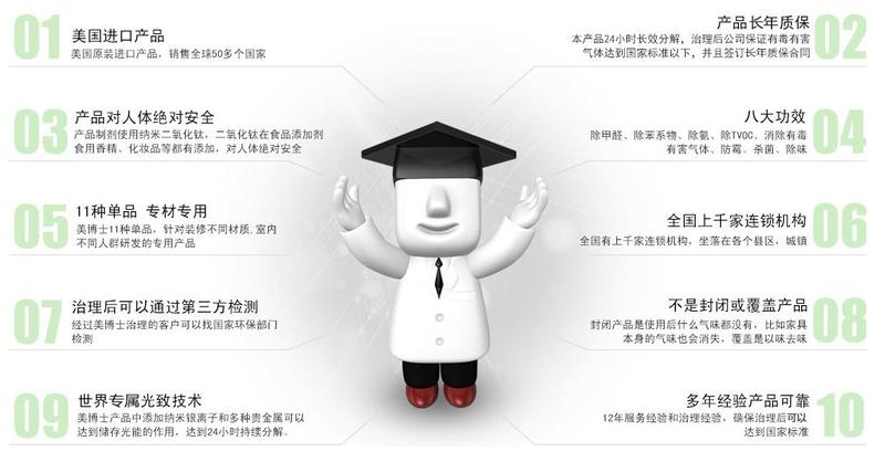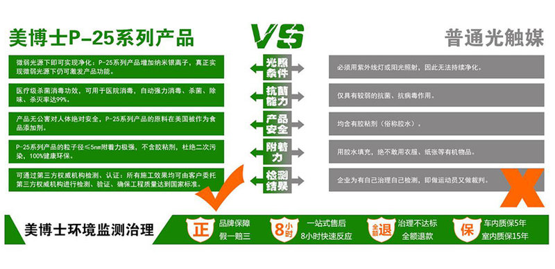 治理項目 室內有毒有害氣體:甲醛、苯、甲苯、二甲苯、氨、TVOC。 服務流程 一.電話或網上咨詢。 二.電話預約,接受任務確定服務時間,并要求業主在檢測前關閉門窗6-12小時。 三.人員到場,現場檢測,簽訂檢測委托書或治理服務合同。 四.三天以內出檢測報告和室內空氣凈化治理方案。 五.根據檢測室內甲醛超標程度量身制定方案。 六.將檢測報告和治理方案送交客戶,約定治理時間,簽訂治理合同。 七.嚴格按照國家標準的規范上門現場治理。 八.收取尾款。 九. 復檢,若不達標,查明原因,繼續服務,直到達標。 十.業主簽字確認驗收。 治理步驟 一、清潔(清潔室內的灰塵,防止噴涂制劑時容易脫落。) 二、高溫熏蒸(通過高溫熏蒸可以消除頑固的污漬、微生物及灰塵,并且甲醛易溶于水,通過熏蒸可以將有害物質脫離附著狀態,加速釋放,所以熏蒸步驟很有必要。) 三、烘烤(甲醛是隨著溫度的升高釋放的越快,在14—18℃的溫度下會持續平穩的釋放,但在28℃以上才會成倍釋放。烘烤既可以讓熏蒸的水分蒸發,又可以加速甲醛的釋放。) 四、噴涂制劑(噴涂制劑是治理步驟里重要的一步,噴涂時制劑一定程霧狀噴涂,掌握好噴涂的距離。) 五、烘烤(噴涂后烘烤是為了制劑能夠快速的干燥,形成保護膜,徹底的360°分解有害氣體。) 六、清潔地面(撤出現場前清潔好客戶家里的地面,以保證撤出治理現場后干凈整潔。) 七、人員撤離(撤出客戶治理現場。) 治理需求時間 家庭治理:一百平米的房子3-4個人一天左右。(室內物品密度不同治理時間不同) 辦公場所治理:一百平米的辦公室3-4個人1-2天左右。(室內物品密度不同治理時間不同) 酒店餐飲治理:一百平米的3-4個人1-2天左右。(室內物品密度不同治理時間不同) 醫療機構治理:一百平米的3-4個人1-2天左右。(室內物品密度不同治理時間不同) 教育機構治理:一百平米的3-4個人1-2天左右。(室內物品密度不同治理時間不同) 汽車治理:SUV3小時左右,小轎車2小時左右。 治理客戶配合 一. 把室內的所有的物品收拾干凈。 二. 治理完后關閉門窗24小時,24小時以后通風7天。 三. 治理完后室內所有的燈全部打開12小時。 四. 治理完后3天內不能擦拭或用手觸摸室內物品。 五. 7天內室內不能有人居住。 六. 治理后7天內,室內不能有活物和植物。 七. 治理7天后不能用強酸強堿以及鋼絲球擦拭室內物品。(注:擦拭物品是用清水清洗抹布即可) 八. 7天后復檢。 治理保障 一、本公司承諾治理完工后室內空氣中的有毒有害氣體達到《室內空氣質量標準》(GB/T18883.-2002)。 二、本公司做完治理交工后,提供三年內每年享受一次免費檢測,在治理交工后不裝修、不添加新污染源,確保您 的室內空氣達標,享受健康的室內環境。 三、本公司承諾在做完治理后復檢如果不達標絕不交工。 污染的來源 從結構上分析,裝修污染的來源為天花板、墻面、地面及家具等。 天花板:污染物為灰膩子、混凝土、吊頂材料。 墻體:污染物為灰膩子、混凝土、墻面造型材料、墻紙、大理石、瓷磚。 地面:污染物為混凝土、瓷磚、大理石、夾板、復合木地板、殺蟲粉等。 家具:污染物為沙發、床、衣柜、床墊、櫥柜、書柜、電視柜、油漆、涂料、膠水等。 美博士治理產品 p-25+光催化劑,是以二氧化鈦為代表的,在添加納米活性銀離子后會大大增強其活性。在吸收太陽光或照明光源中的紫外線后,受紫外線激發,電子游離TiO?表層電子逃逸后,留下的凹面帶正電荷叫空穴,光在空穴有很強的氧化能力, 所以p-25不是簡單的覆蓋,因為p-25系列產品不含有任何粘合劑,依靠自身性質附著在基材表面,干燥后形成穩定凃層,只要有光有甲醛、苯等有毒有害氣體就會發生反應,將有害氣體分解成二氧化碳和水,牢牢鎖住釋放源表面,在釋放的同時分解。它本身不參與反應消耗所以它會長久存在,只要不人為破壞就能長期的發揮效果,可以保持10年以上.我們的產品對施工后的房間每一個角落都會進行保護,也可以說整個房間都是一個大的空氣凈化器。 p-25系列產品也被廣泛使用在凈化空氣、水、土壤等很多領域,比如大多空氣凈化器都會有一層p-25或光觸媒凈化層,當然p-25+則是全球領軍的也是成本尤其貴的凈化產品。簡單的說就好比在墻體和家具表面排列了無數個士兵,把甲醛視為敵人,出來一個粉碎一個。 |